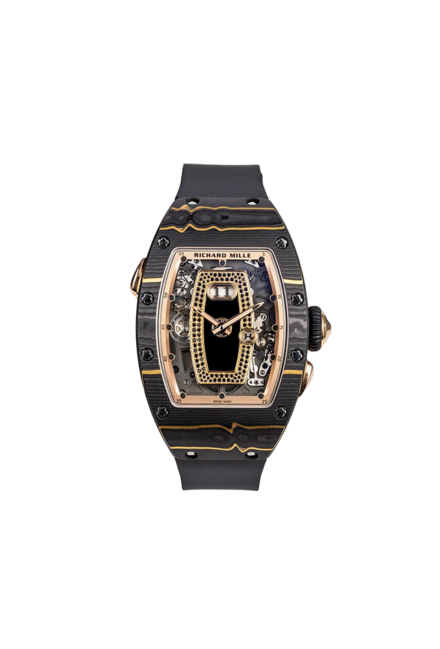 錶面:縞瑪瑙,鑲黑色藍寶石,玫瑰金